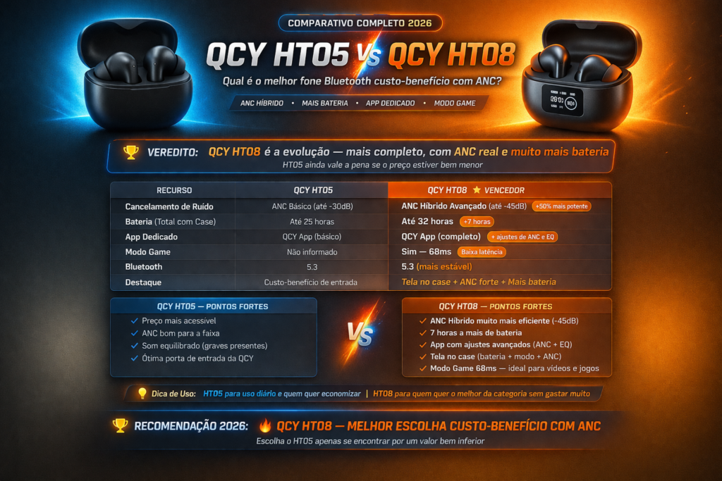 QCY HT05 vs QCY HT08: Qual Vale Mais a Pena em 2026? 🔥