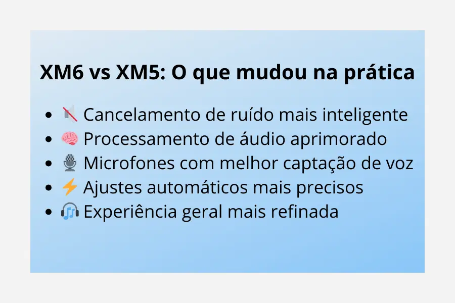 ⭐ Nota: 9,8 / 10 O XM5 ainda é excelente.